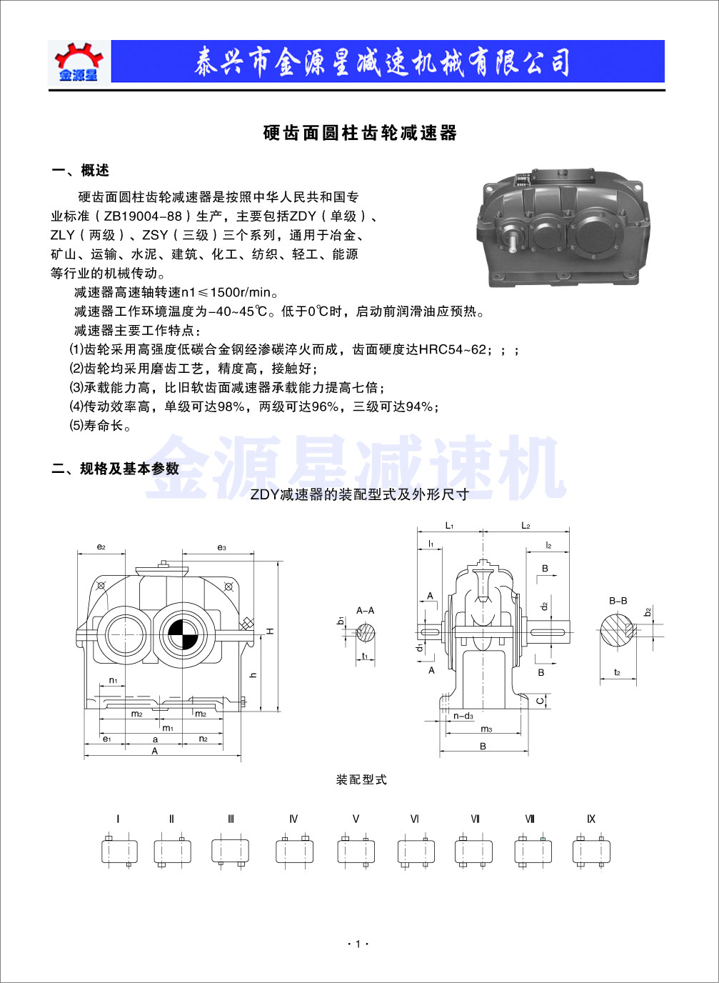 ZDY減速器外形尺寸圖及轉配形式_江蘇泰興金源星減速機歡迎您