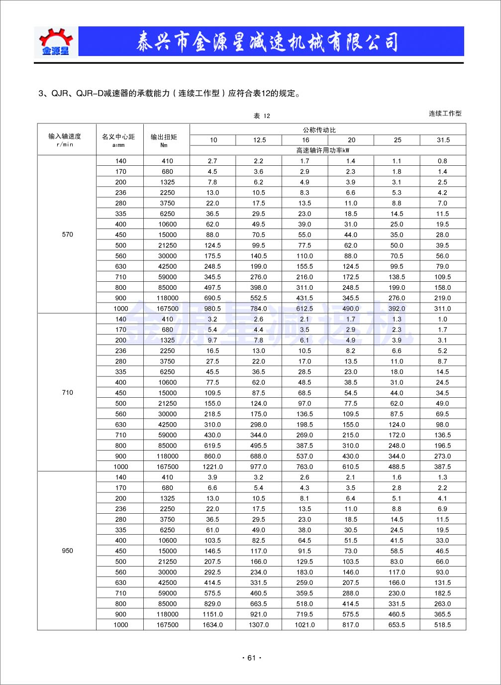 QJR起重機(jī)減速機(jī)型號(hào)樣本選型資料,泰興金源星減速機(jī)其中包含起重機(jī)減速機(jī)的承載能力,工作級(jí)別,不同級(jí)別應(yīng)進(jìn)行換算,輸出軸允許的更大徑向載荷,減速機(jī)的選用及潤(rùn)滑等。點(diǎn)擊..........
