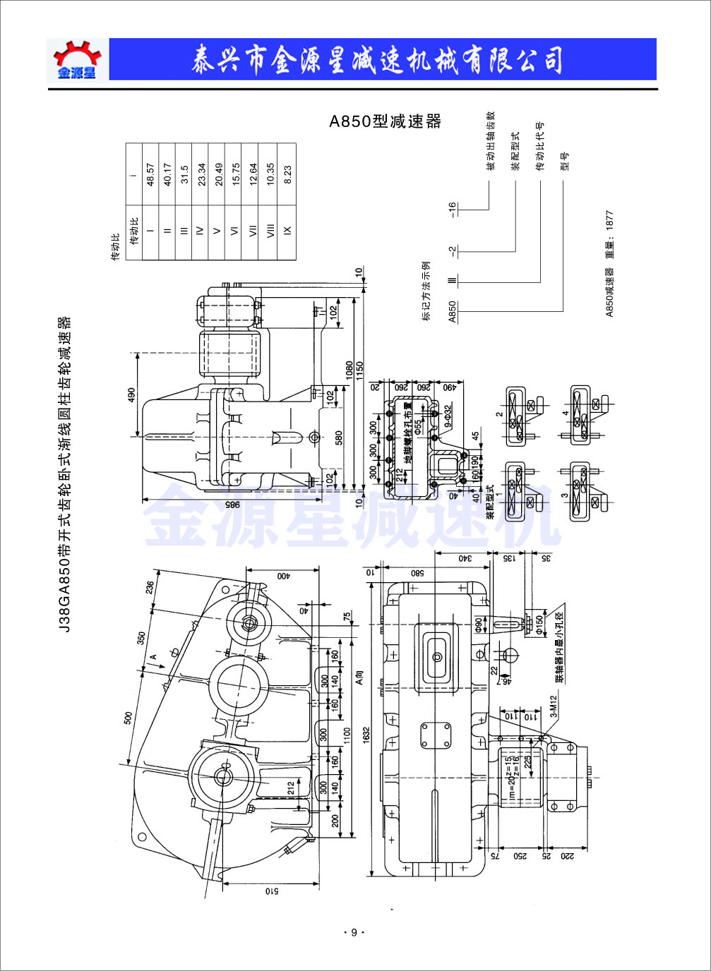 A850帶開(kāi)式齒輪臥式漸開(kāi)線圓柱齒輪減速器選型__泰興金源星